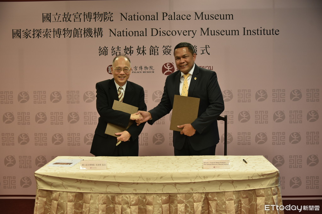 國立故宮博物院與泰國國家探索博物館機構(National Discovery Museum Institute, NDMI)於7日締結姐妹館,由故宮院長吳密察與泰國國立暹邏博物館館長Mr. Rames Promyen代表簽訂合作備忘錄。