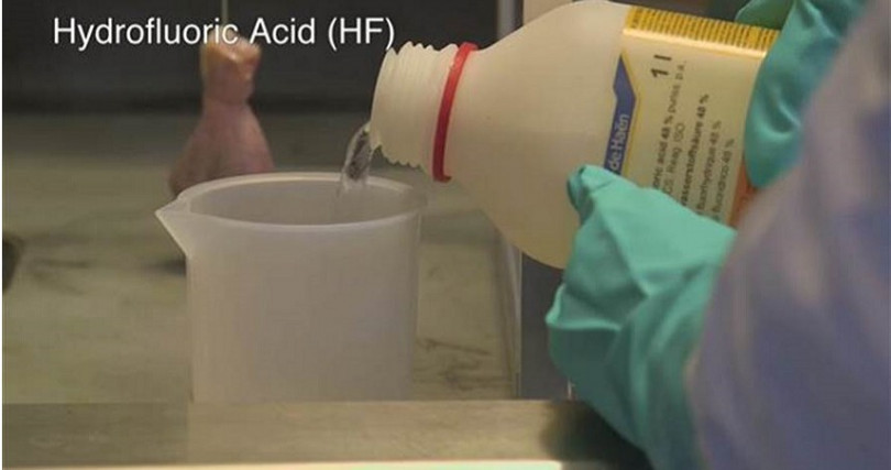 ▲俗稱「化骨水」氫氟酸為強酸性質,會讓人嚴重灼傷甚至中毒休克亡。(圖/翻攝畫面)