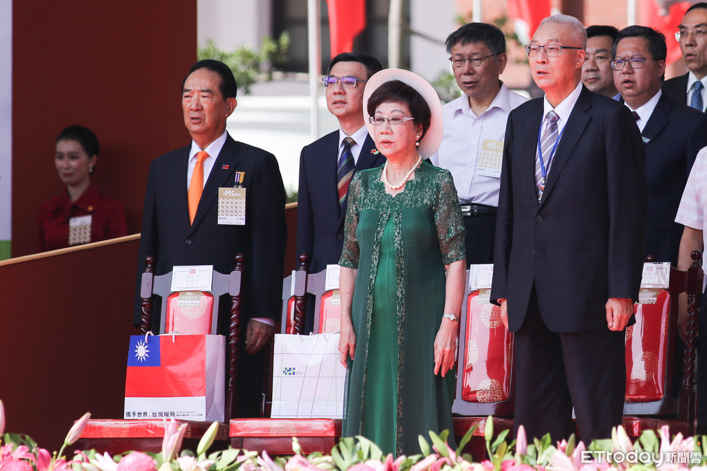 2019雙十國慶熱鬧登場,受邀出席國慶大典的政治要角們在台上寒暄,欣賞精彩的表演,其中重要的「唱國歌」橋段受到外界矚目,前總統馬英九、台北市長柯文哲、民進黨主席卓榮泰、國民黨主席吳敦義都有全程張口唱,立法院長蘇嘉全則是到歌曲到中段時才開口唱,前副總統呂秀蓮雖然有開口唱,但略過歌詞的「吾黨」二字。