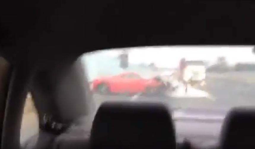 根據英國《每日郵報》報導,拍攝到該片段的網友當時和家人準備開車上到高速公路,看到前方漂亮的法拉利,於是拿起手機想要捕捉超跑呼嘯而過的樣子,沒想到就在進到公路後,法拉利在網友車子後方一度想要切換車道,但因為天雨路滑,瞬間打滑失去方向,接著整台車就像是「陀螺」般的快速旋轉,整台車直接撞上一旁的水泥牆。