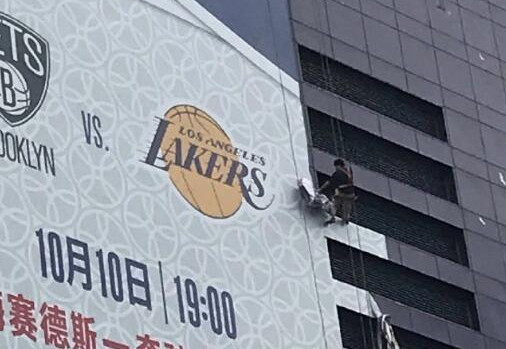 ▲▼NBA上海賽廣告被拆除。(圖/記者陳政錄攝)
