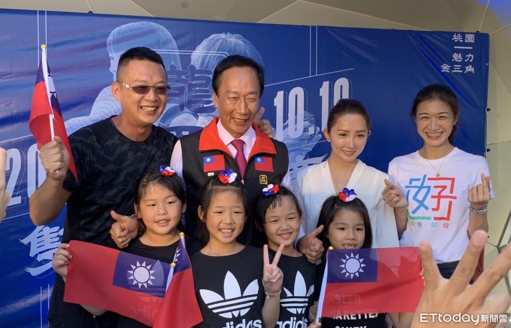 ▲郭台銘參加桃園市張老旺國旗屋升旗典禮後,與郭粉合影留念。(圖/記者沈繼昌攝)