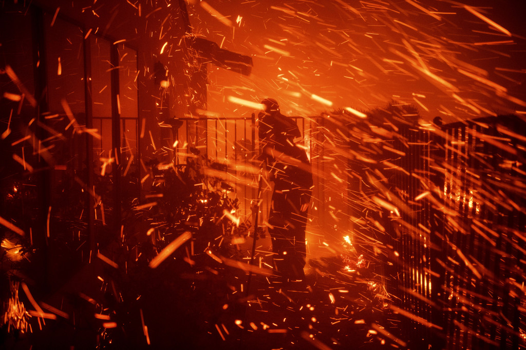 美國加州洛杉磯北部10日當地晚間的野火迅速蔓延,火噬至少數十棟房屋、道路封閉,在短短不到24小時之內就蔓延超過3035公頃的土地,迫使高達10萬人逃離家園。當局指出,這場野火至少奪走一名男子的性命,因為當時忙著滅火、不甩疏散指令的他突然心臟病發。