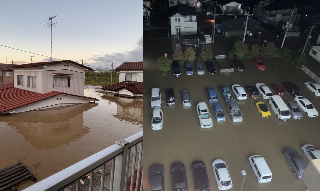 今年第19號颱風哈吉貝路徑橫掃日本,目前已經影響至東北、關東地區,光是這2天就下了超過1000毫米的雨量,是一年降雨量的3、4成,導致東京都、埼玉縣、栃木縣、福島縣等地紛紛傳出淹水災情,居民們則將淹水畫面上傳推特。