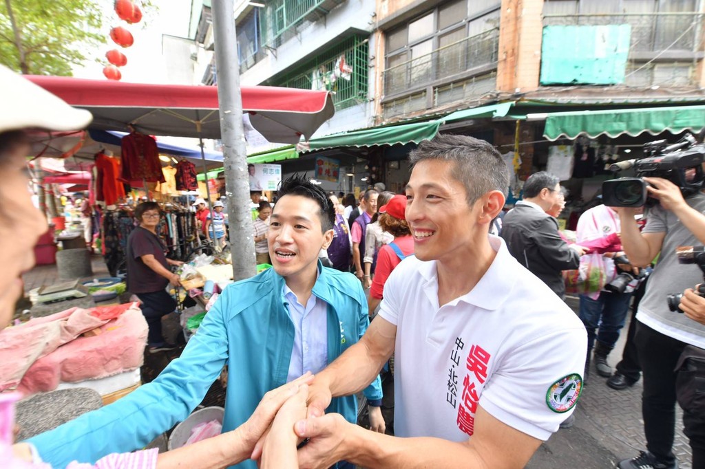 ▲卓榮泰陪同何志偉、吳怡農掃街。(圖/民進黨提供,下同)