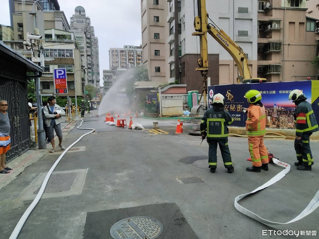 台北市消防局表示:當時接獲民眾報案,敦化南路二段63巷21弄口有施工人員疑似弄破瓦斯管線造成瓦斯外洩,經消防隊緊急派遣人車到場灑水稀釋空氣中瓦斯濃度,再經儀器檢測現場空氣瓦斯濃度係數降為0,危機解除目前已交台北瓦斯公司工程人員處理。