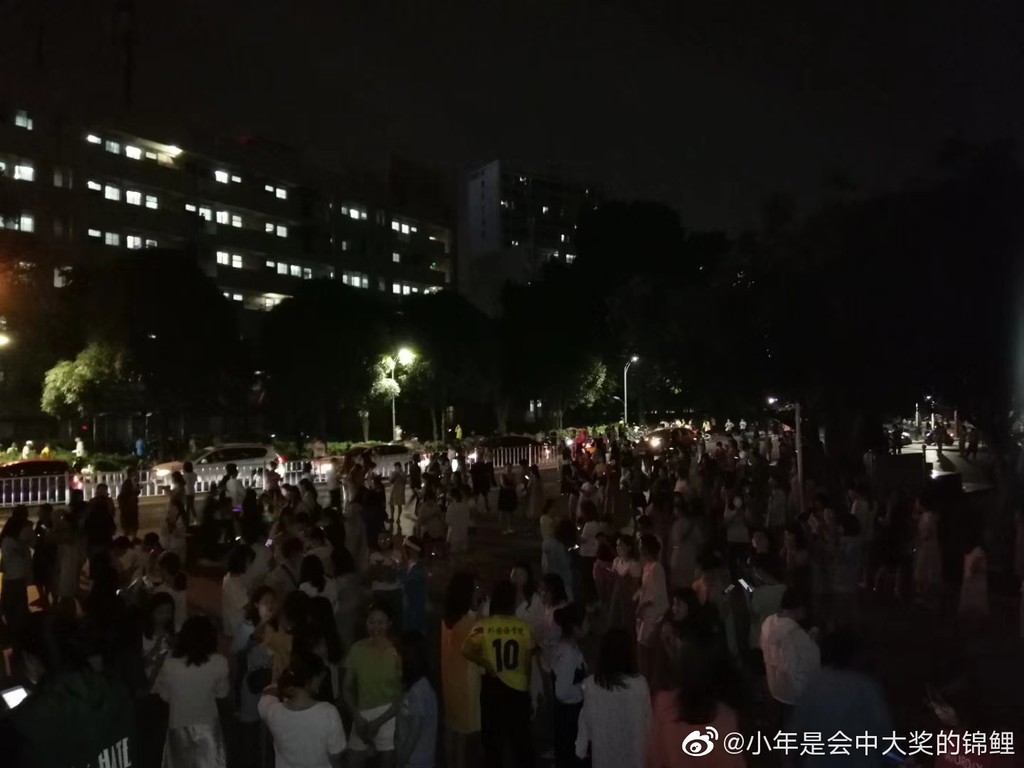 一名管理宿舍的阿姨擔心有學生太過驚慌,在避難過程中發生意外,緊急在平時聯絡的微信群組裡大吼,「西十一棟的同學聽好啦,沒有收到地震的預報,你們不要慌,先下來空地方,千萬不要跳床(窗)啦!」此外,阿姨還提醒同學們,「哪個家裡是玉林的,打個電話問問家裡情況!」