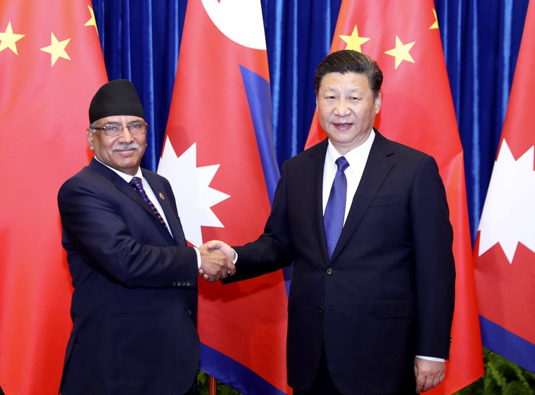 ▲習近平2017年在北京與時任尼泊爾總理的普拉昌達會面。(圖/新華社)