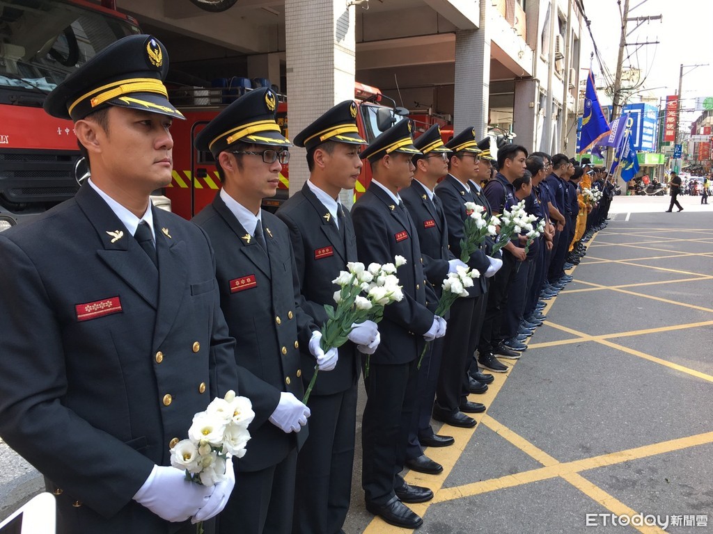 ►2殉職勇消告別式 消防旗、國旗覆棺!台中各分隊「鳴笛10秒」敬悼