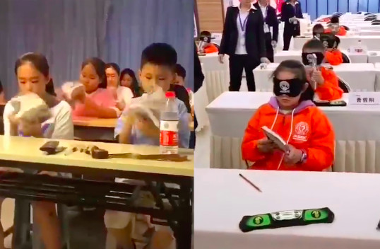 ▼量子波動速讀比賽,小朋友翻書如搧風。(圖/翻攝微博)