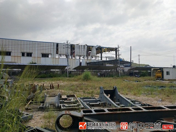 ▲工廠的鐵皮外牆被炸毀。(圖/翻攝玉林新聞網)