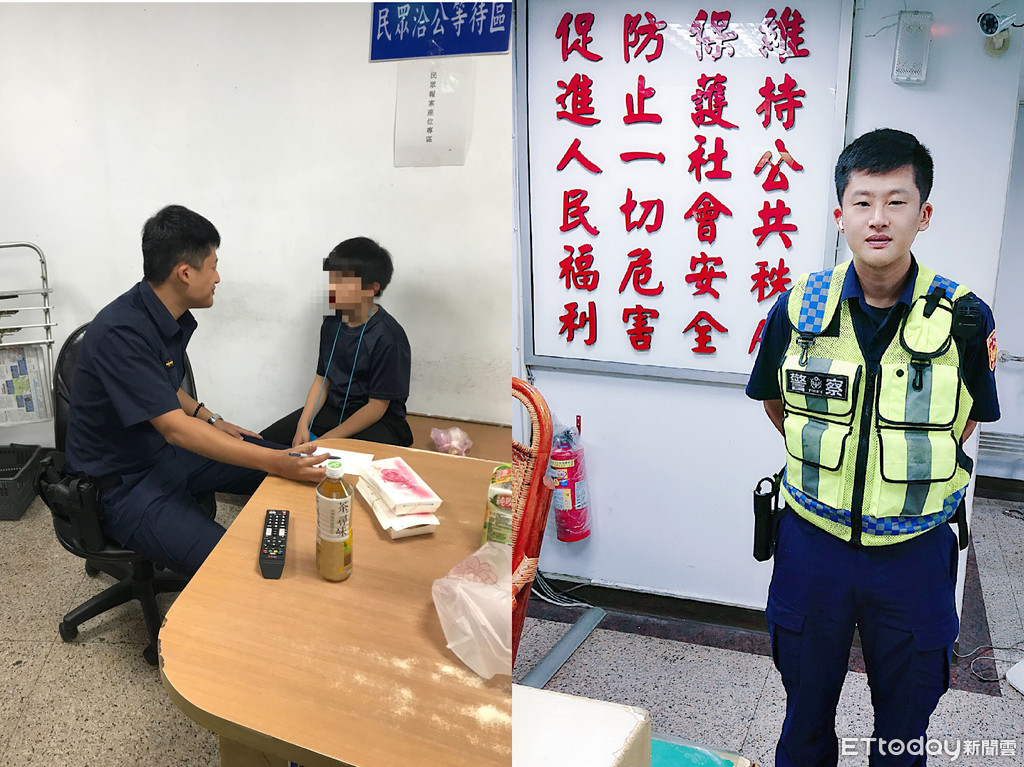 ▲ 泰籍9歲男童遊基隆廟口迷路,暖警「撂英語」溝通助返飯店。(圖/記者郭世賢翻攝)