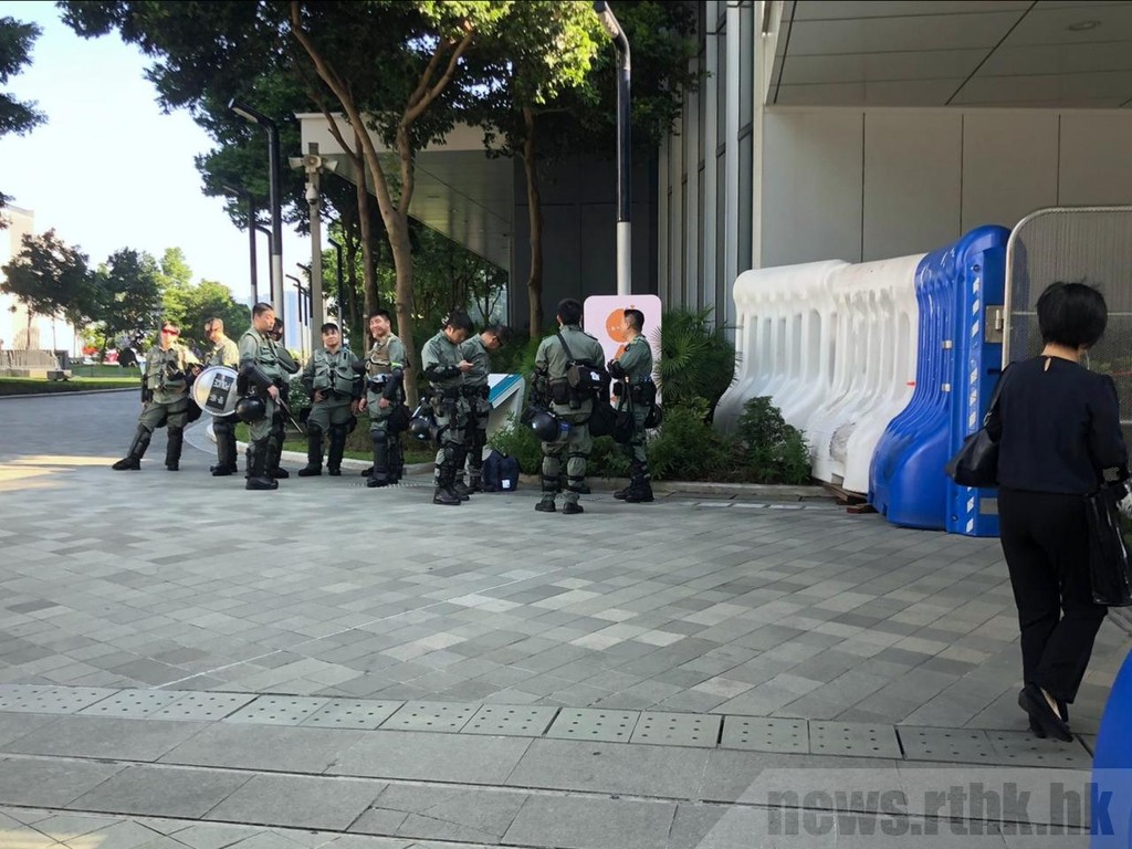 ▲香港添馬公園有多名防暴警員戒備。(圖/翻攝自香港電台)