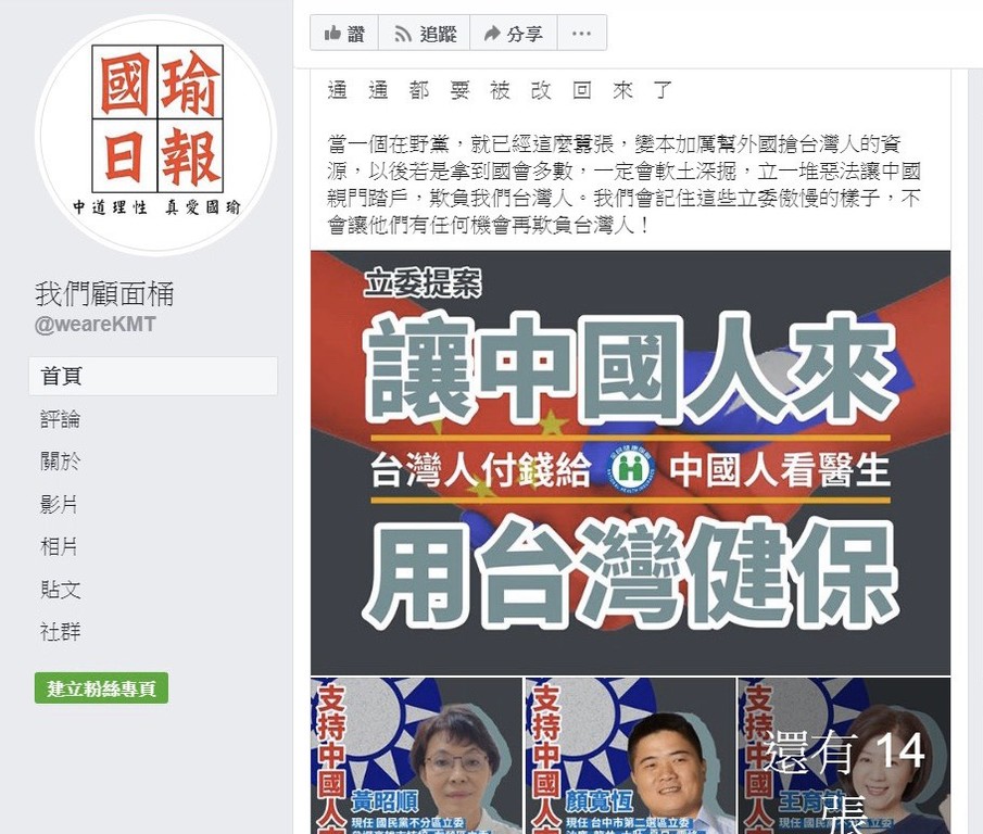 針對綠營發動側翼網軍,一再針對國民黨立委黃昭順等16位委員,在今年4月初提案、連署修改《臺灣地區與大陸地區人民關係條例》第16條條文,修法用意係以人道考量為出發點,讓陸配可對雙親善盡孝道,原本立意良善,卻遭綠營網軍以「吃垮台灣健保、長照」等誇大、不實的聳動文字、圖卡,在各大社群對本黨立委進行抹黑與攻訐,企圖影響明年大選,立法院國民黨團發布聲明,予以最嚴厲的譴責,同時不排除對散播不實言論者採取法律行動。