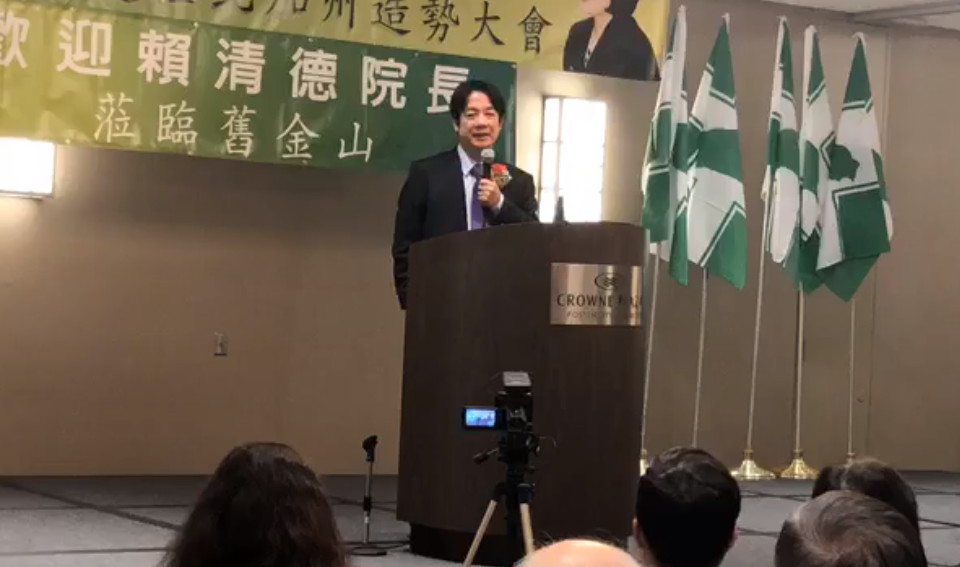 2020大選將至,前行政院長賴清德赴美展開拜會僑胞的行程,他16日(美國時間15日)到舊金山,出席美國北加州造勢大會,並發表談話。賴清德表示,總統蔡英文若連任成功,絕對比國民黨總統參選人韓國瑜更能帶領台灣。