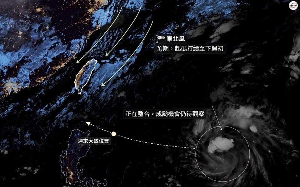 天氣粉專「台灣颱風論壇|天氣特急」昨也分析,東北風在這兩天悄悄的進場,預期會一路吹到起碼下星期初,因此這整個星期,將會是北東濕涼、中南暖熱的大格局。在周五之前,主要下雨熱點會落在北部和宜蘭一帶,特別是東北角一帶雨勢可能較大。