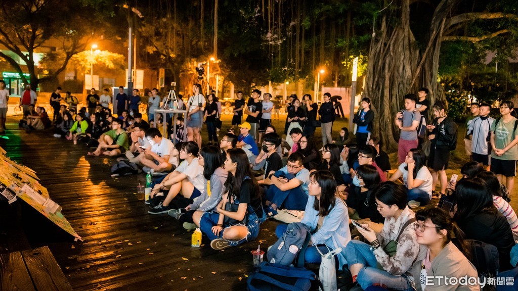 成大校園連儂牆場地申請10月16日是最後一天,晚上7時舉行「還給香港一個光輝歲月-我在成大撐香港」聲援活動,近百位學生到場聆聽,用實際行動聲援香港抗爭;活動最後大家一起合唱「香港國歌」《願榮光歸香港》,為這場活動作結束(圖/記者林悅翻攝,下同)。