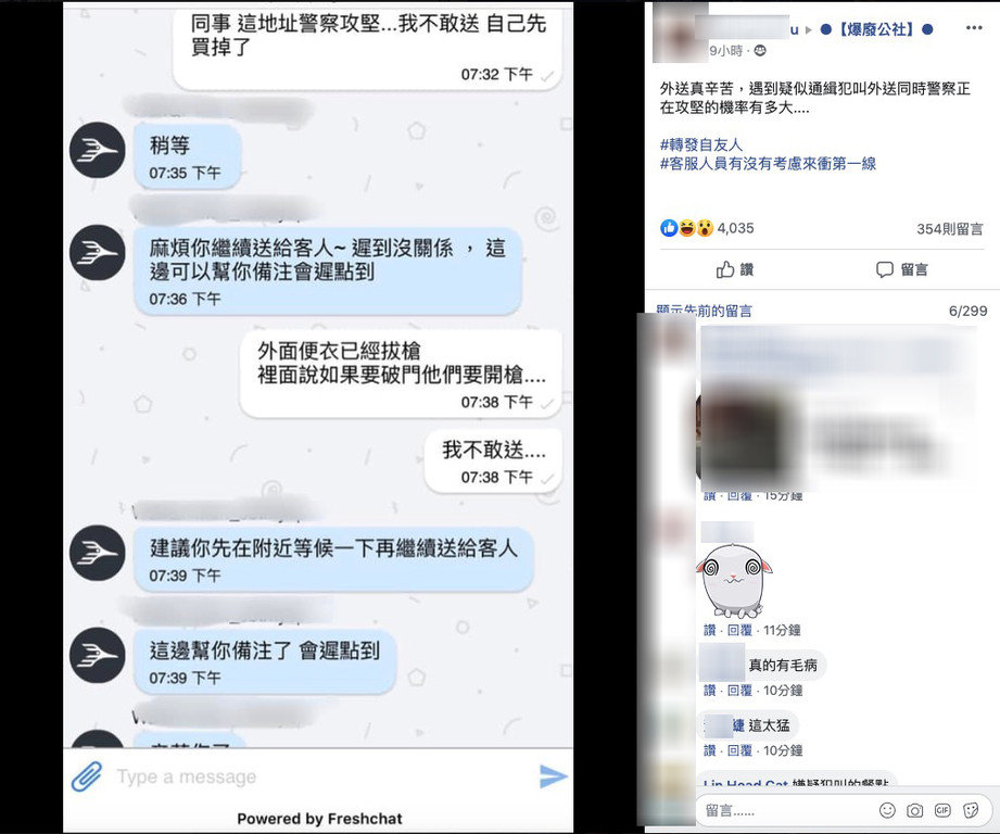 ▲外送員遇到警方攻堅。(圖/翻攝自Facebook/爆廢公社)
