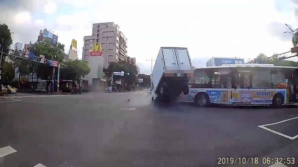 警方調查,18日上午6時許,52歲的曹姓公車司機準備從士林中正路左轉中山北路時,未禮讓對向直行車,當場與32歲吳男所駕駛的小貨車發生碰撞,碰撞力道之大,小貨車後半部整個彈飛空中,後車門也當場彈開,畫面相當驚悚。