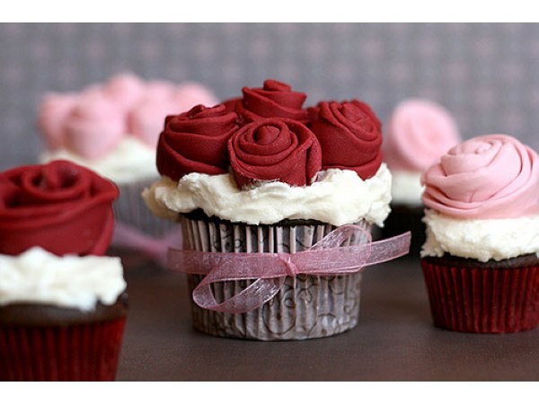 紅色玫瑰的花語代表愛情,一朵朵以軟糖雕刻而成的玫瑰花躺在杯子蛋糕上,看起來精緻的程度,連用手摸都捨不得!