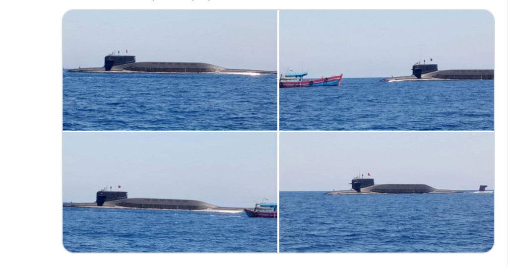 ▲解放軍1.1萬噸的09IV晉級核潛艦上浮,同框越南漁船。(圖/翻攝自Duan Dang twitter)