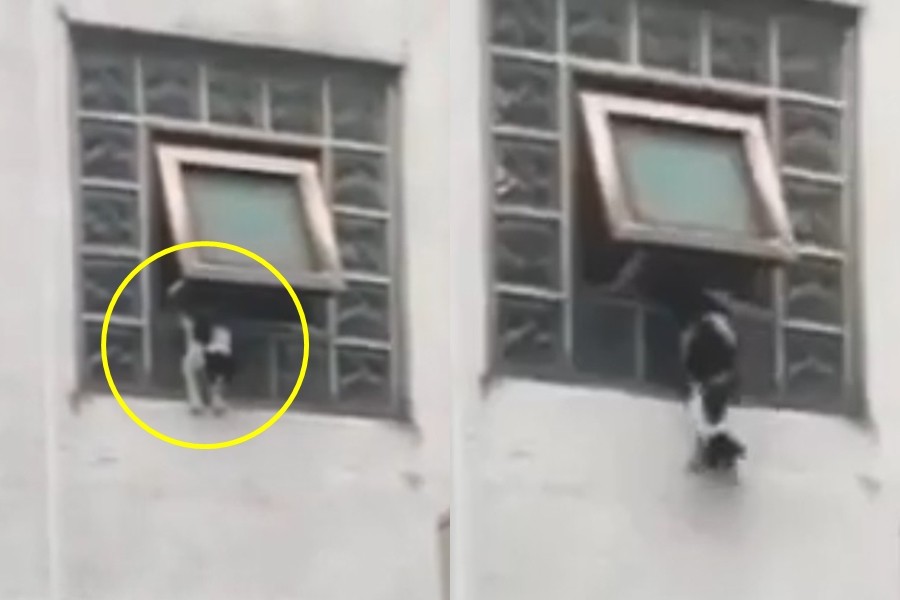 影片中可見,白底黑色花紋的貓咪上半身已經在窗戶外面,前腳奮力抓住窗沿,好不容易爬回窗戶上,下秒卻遭人一推,當場從4樓摔落。拍下影片的民眾雖然在事發後馬上到貓咪墜下的地點查看,但貓咪已經消失。根據遮雨棚凹陷狀況看來,貓咪應是落在遮雨棚上,目前傷勢不明,但從墜落高度判斷,很有可能有骨折或內臟受損。