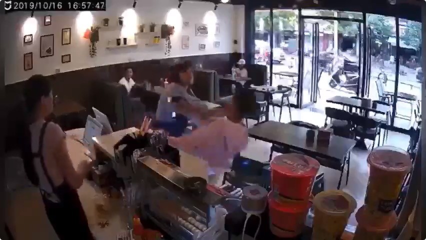 一位短髮女子在咖啡廳不滿被插隊,竟然直接伸手推倒插隊女子後猛踹,甚至還「大外割」把女子甩出撞桌椅,隨後拿起包包跟外套離去。被摔的女子則不忘拿起手機,拍下施暴女子。