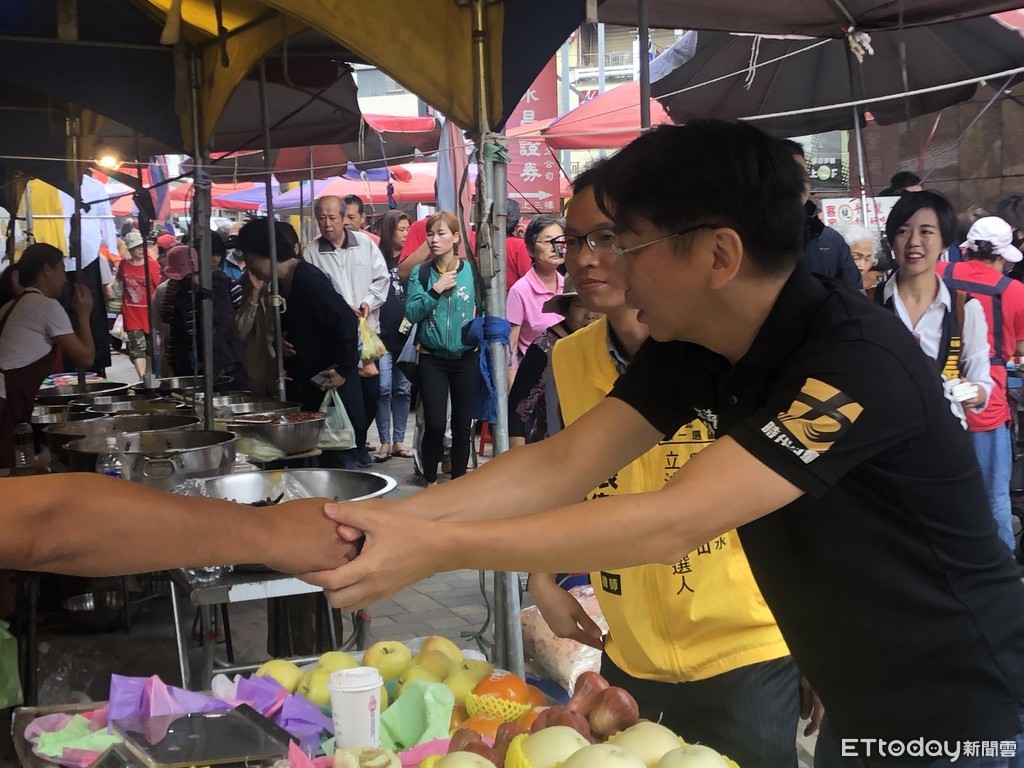 ▲徐永明陪同張衞航至林口市場掃街拜票。(圖/記者林銘翰攝)