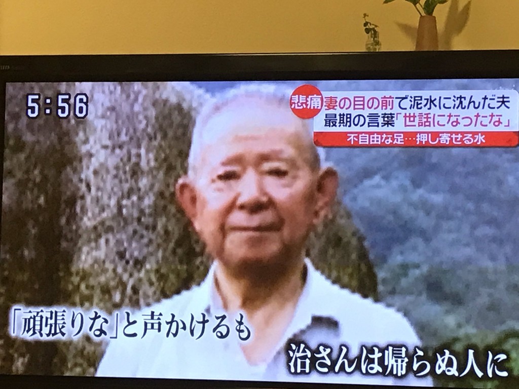 綜合日媒報導,這名治爺爺因腳有殘疾,因哈吉貝帶來的瞬間大雨來不及逃生,看著陪伴一生的愛妻在安全的高處才稍微放心,而自己腳下的水也逐漸升高,最後整個人慢慢沉入水中,兩人的雙手也沒有因此放開。