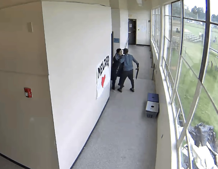 美國奧勒岡州的一所高中,日前發生一起令人震撼且鼻酸的故事。一名19歲的男學生因為和女友分手,無法從悲傷中走出來,於是偷攜帶長步槍到教室準備進行一場洩憤的殺戮、並自殺,沒想到卻被27歲的高中足球教練發現,在經過奪槍與開導後,教練敞開手臂給了男學生一個大大的擁抱,過程全被監視器拍下。