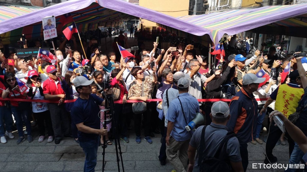 ▲韓國瑜參拜大天后宮,拉起紅龍柱個開人群。(圖/記者洪正達攝)