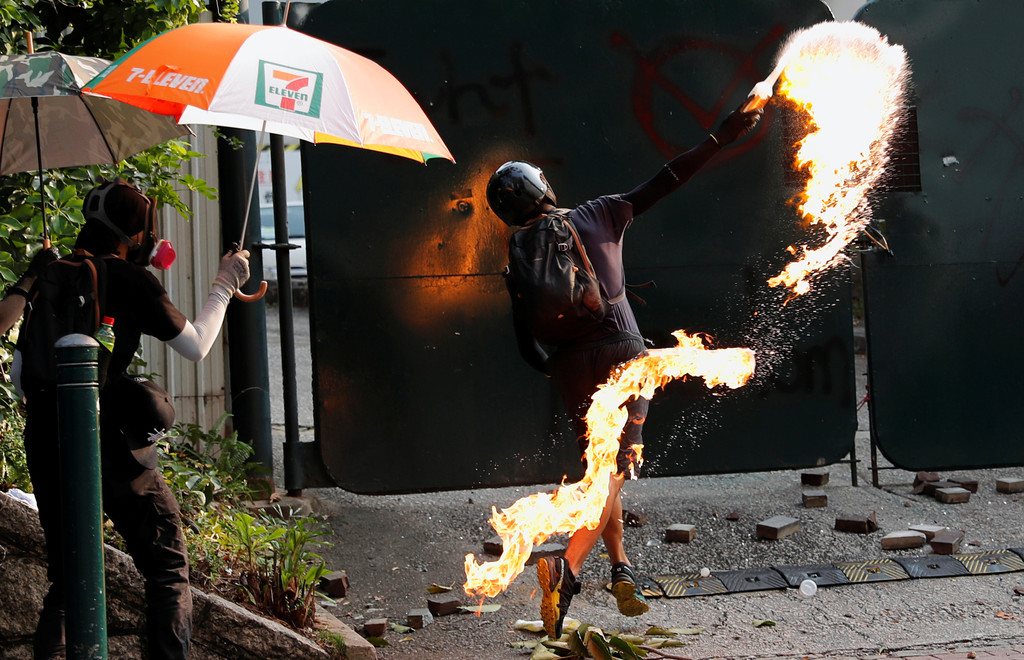 ▲▼示威者投擲汽油彈。(圖/路透)