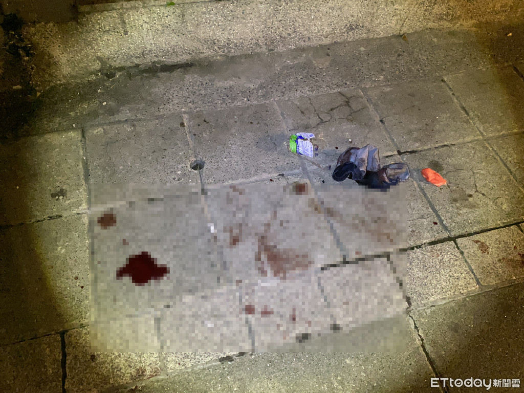 ▲地面留下傷者血跡。(圖/記者游宗樺攝)