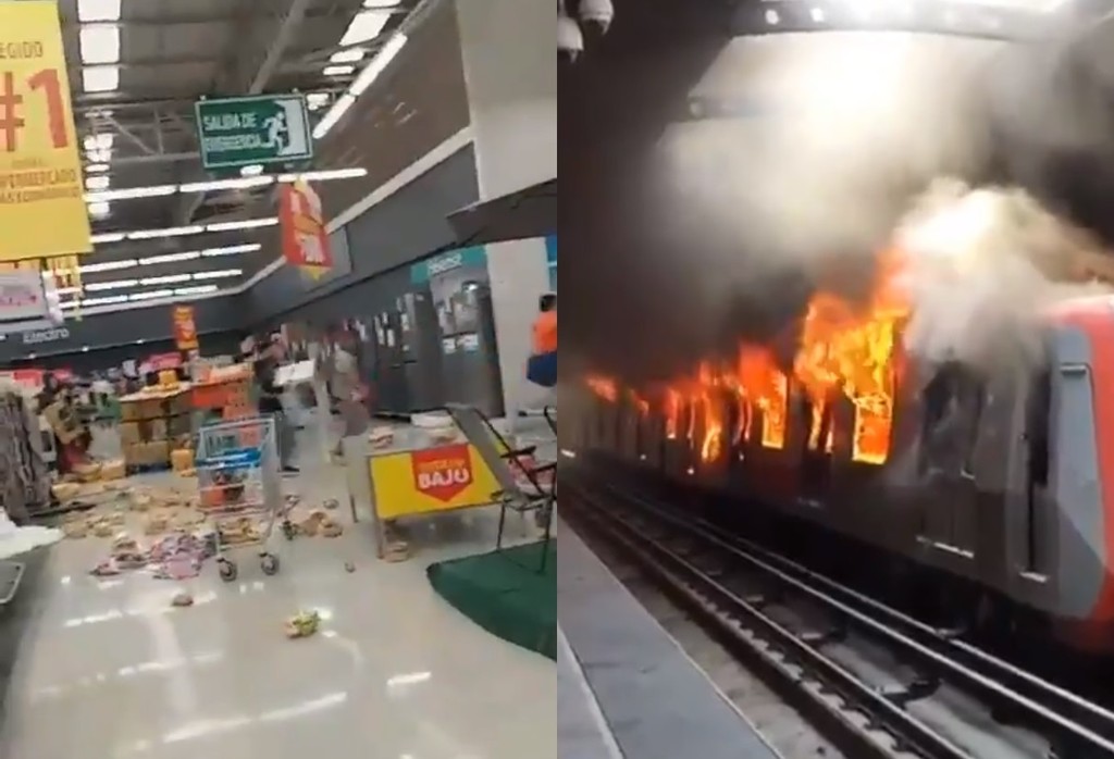 根據畫面顯示,許多民眾進入超市後,把一箱箱、一袋袋的商品給搬出來,超市內商品散落一地。在另個場合,身穿墨綠色制服、頭戴安全帽的執法人員持棍攻擊抗爭者,多輛軍方用車開進聖地牙哥的街道,地鐵車廂也遭受波及起火。