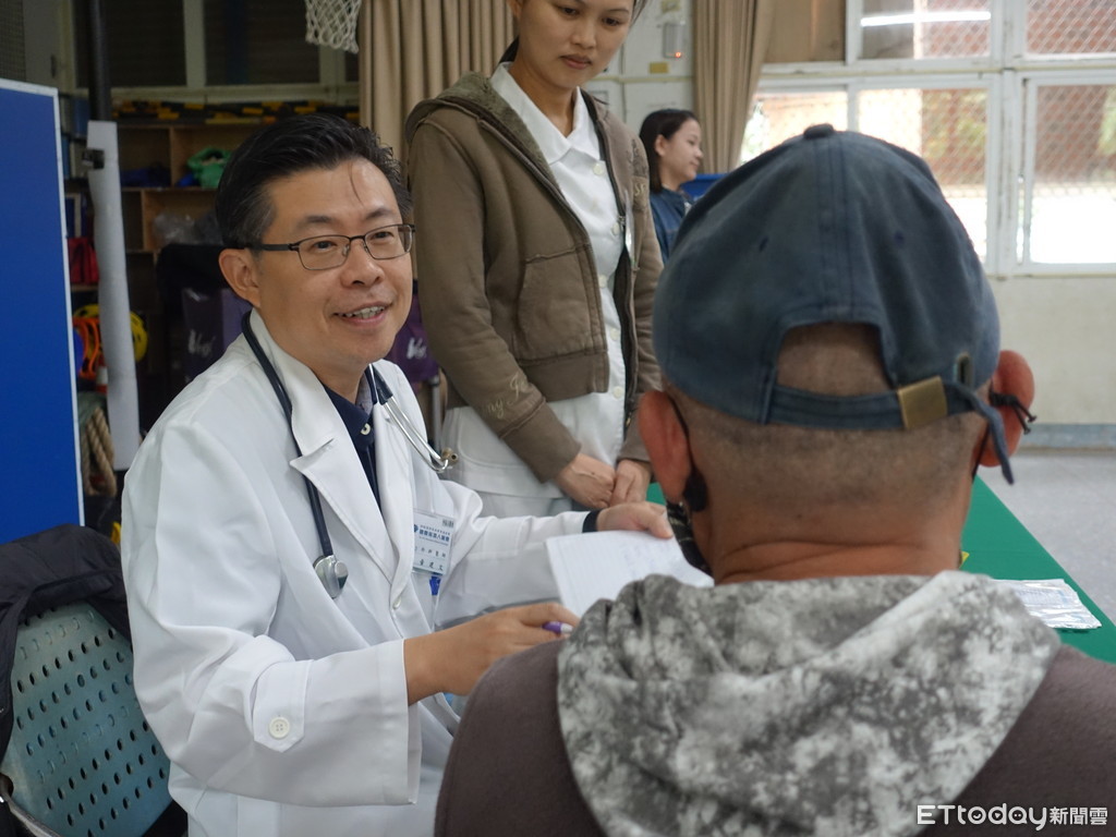 ▲紀醫師關懷頸椎以下無法動的章先生,章先生表示牙痛,紀邦杰醫師為他安排後續看診。