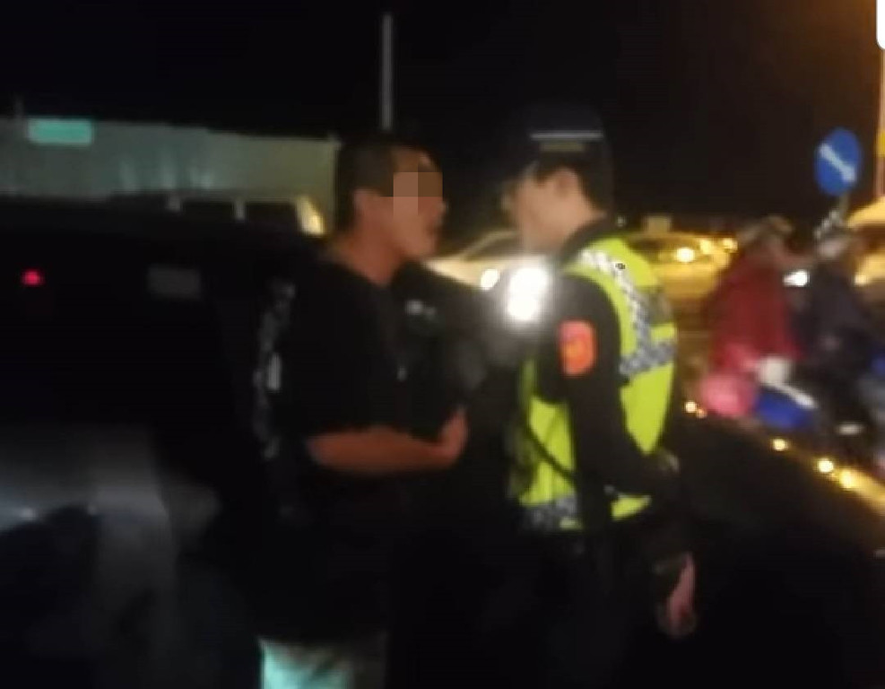 警方上前準備開單,彭男卻突然情緒失控對著車上孩子說:「小狗在開單」,員警請彭男下車,他卻對著警員大聲咆哮:「你找我麻煩」、「我說小狗不行喔」,警員問:「哪裡有小狗」,彭男大聲回嗆:「我跟我兒子說小狗有什麼好怕的不行喔?」情緒激動的彭男一度上前貼近警員,直到彭妻下車勸阻將兩人隔開後,他才停止咆哮,彭男失控的畫面,也被民眾錄影並上傳至《新竹爆料公社》。