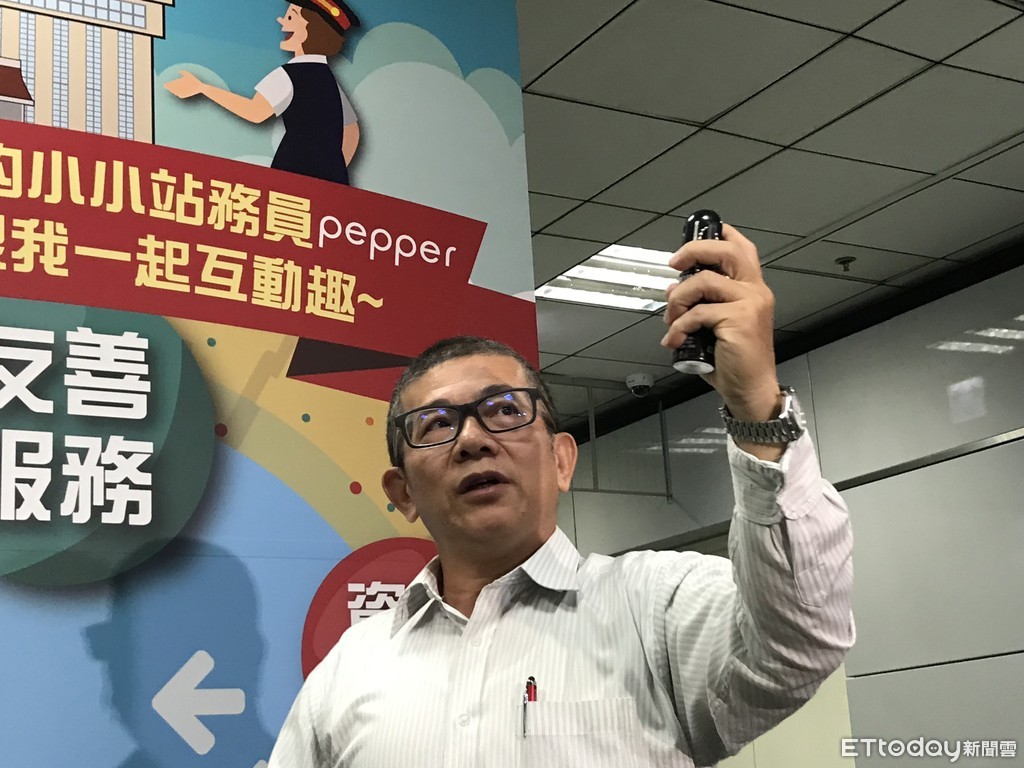 ▲陳榮彬說,若旅客有失去理智的脫序行為,列車長可使用防狼噴霧讓對方失去攻擊性的能力,試辦2個月後將評估成效是否全面發配使用。(圖/記者賴文萱攝)