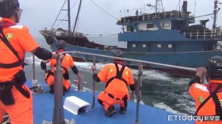 ▲海巡署人員成功登船查扣衝撞我基隆艦的肇事閩晉漁號漁船。(圖/記者張君豪翻攝)