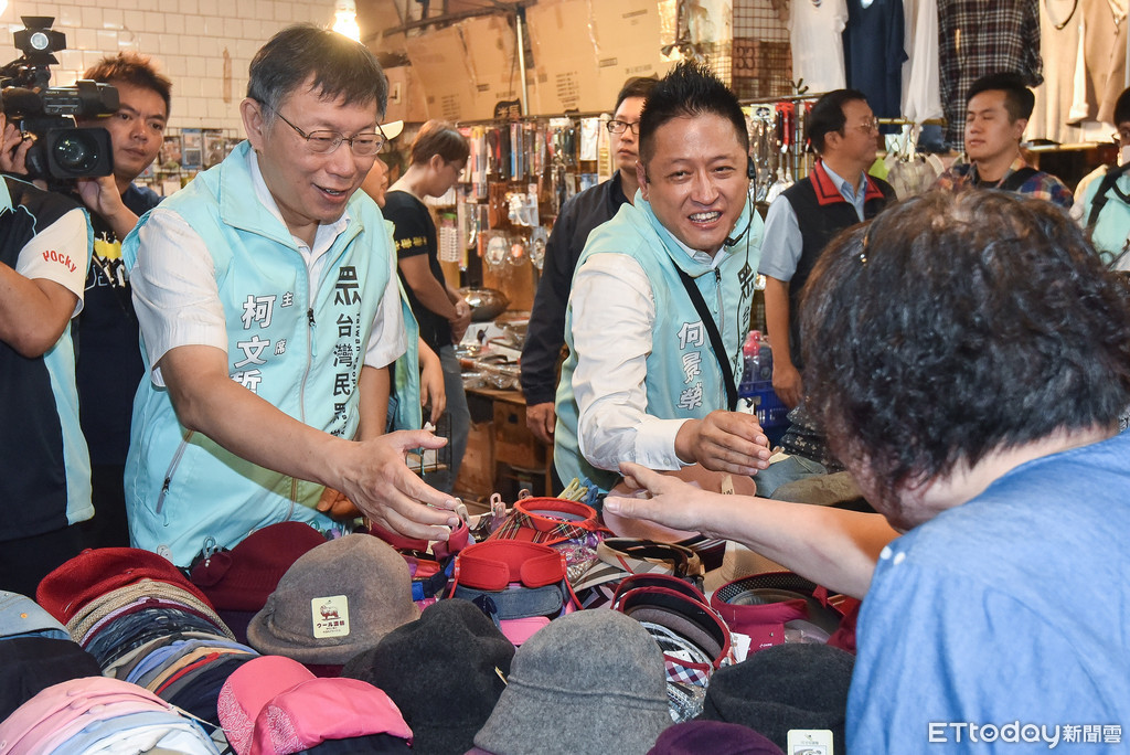 ▲柯文哲陪同區域立委候選人何景榮掃街。(資料照/記者李毓康攝,下同)