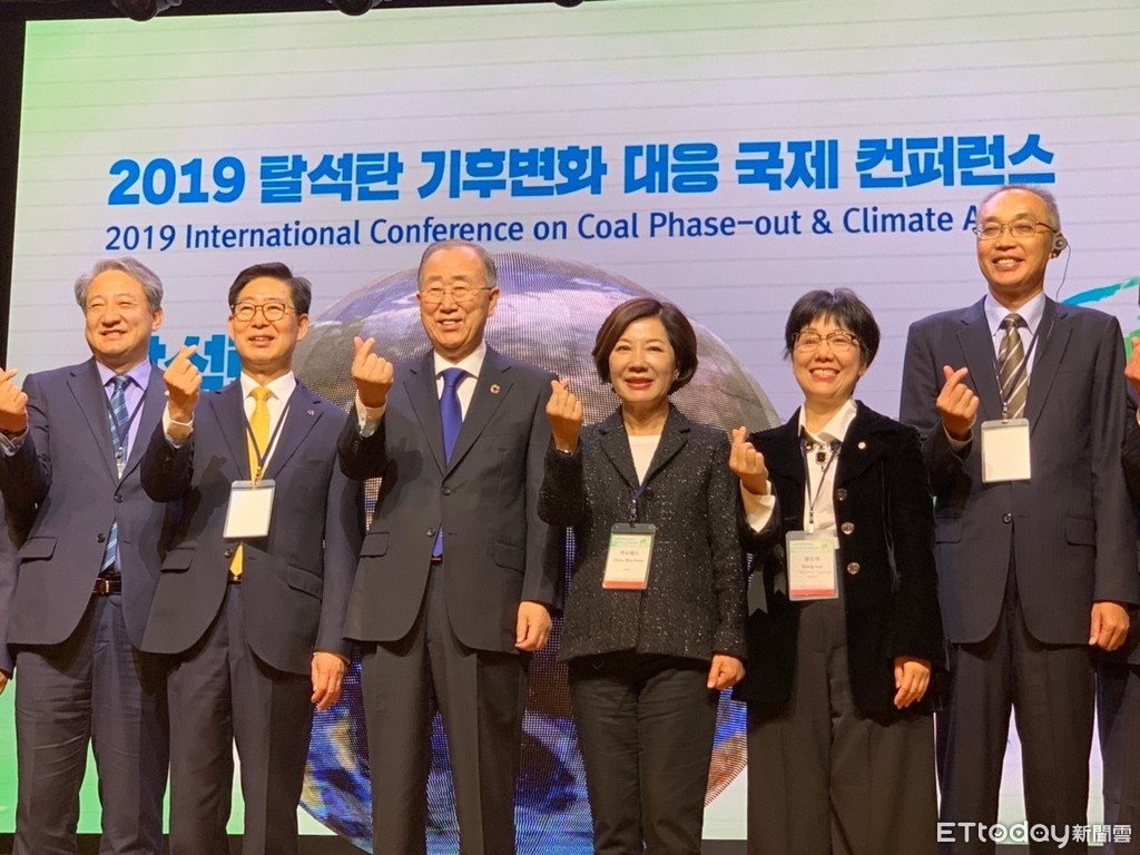 ▲台南市副市長王時思(右2),代表黃偉哲市長,赴韓響應棄煤行動串聯城市力量,共同面對氣候變遷影響。(圖/記者林悅翻攝)