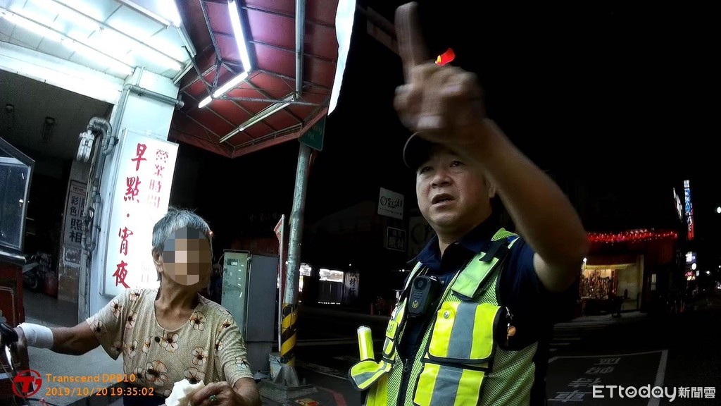 第三警分局東區分駐所10月20日晚間7點左右接獲眾報案,東區十甲東路附近有一名騎著三輪腳踏車的老人疑似迷路,在路上沒看紅綠燈「黑白騎」十分危險。當時在巡邏的巡佐溫智輝、警員林政穎立刻到場,順利找到該名83歲的劉姓阿嬤。