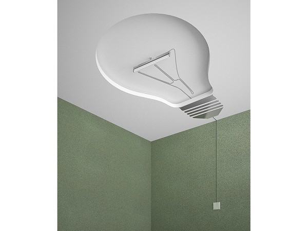 如果哪天回到家中發現天花板多了一顆巨大的平面燈泡,會不會大吃一驚呢?而這樣的造型設計,也不禁讓人好奇,既然中間已經有長柱型燈管,又為何要多一顆燈泡呢?