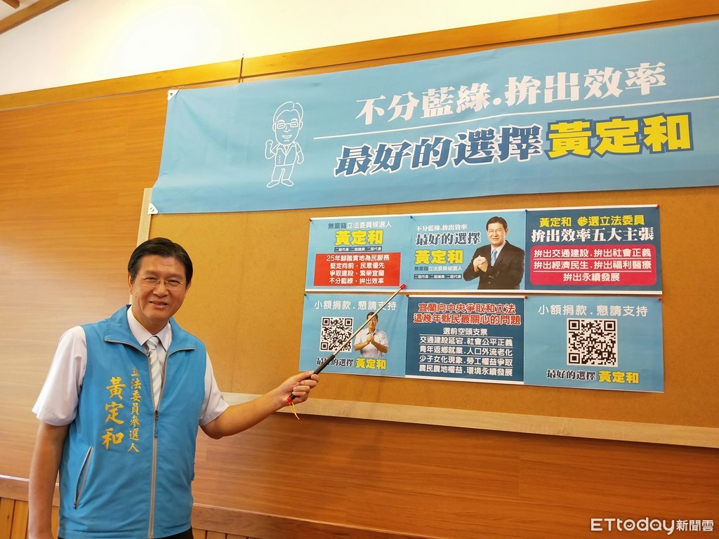 25日中午,黃定和宣布以無黨籍參選立委,他表示,為宜蘭未來發展,決定以無黨籍身份,堅定向前,參選立委到底!同時要讓改變政治文化在宜蘭發生,不分黨派,選人不選黨!宜蘭不用因酬庸政治再等4年,是從現在開始改變。