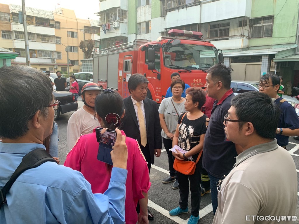 ▲台南市議會郭信良議長前往火警現場,並代表議會致送家屬慰問金10萬元,盼傷者早日康復,死者安息。(圖/記者林悅翻攝,下同)