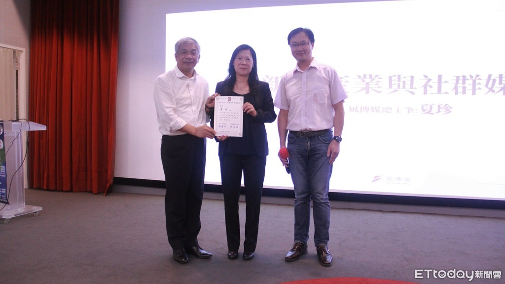 ▲陳清河副校長(左)、胡全威系主任(右)頒發感謝狀給夏珍。(圖/世新大學提供)