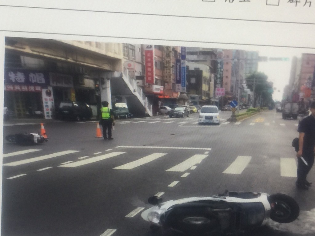 女網友po文表示,7月6日騎機車經過經國路二段與西大路口時,她與正在追未戴安全帽而闖紅燈的北門派出所吳姓警員發生車禍,車禍發生當時自己是以時速20~30綠燈直行,而吳姓員警的時速至少在70以上,甚至未煞車直接撞上她的左側。