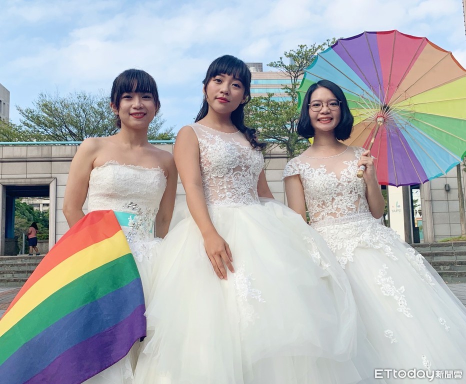 黃捷今年特地穿上絕美白婚紗,從高雄北上參加同志大遊行。她表示,「我很感動,來這邊跟大家一起感受同婚元年幸福的氣氛,婚姻平權走到現在,社會上經過非常大的包容才有共識,祝福同婚元年。穿婚紗也是希望同志友善店家,包含婚紗業者和喜餅業者的彩虹經濟大家能看到,友善包容大家可以一起幸福。」