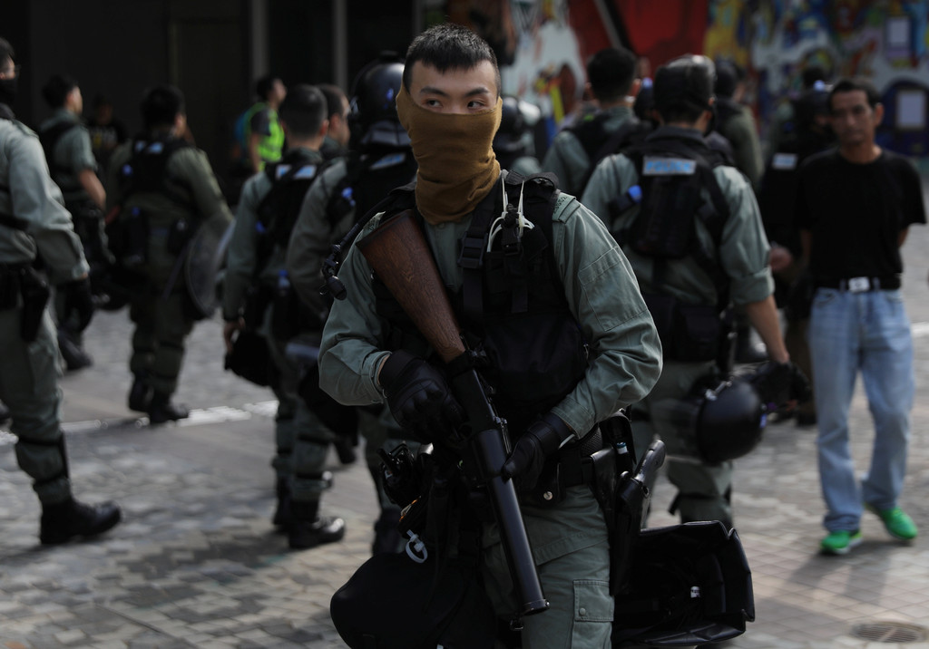 ▼港警蒙面執勤。(圖/路透社,下同。)