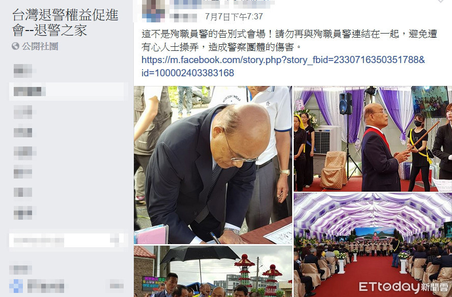 ▲日前臉書不少網友轉載行政院長蘇貞昌到殉職警會場丟筆假消息。(圖/記者張君豪翻攝)