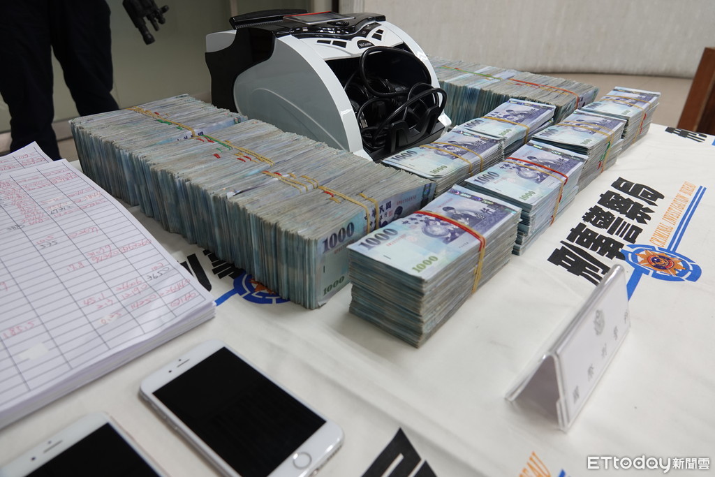 ▲刑事局29日發布全國掃蕩賭場績效,現場擺放超過上千萬元現金。(圖/記者張君豪攝)